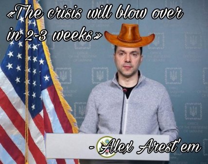 И как же мемы без их "украинского короля" экс-советника Офиса Президента Алексея Арестовича. Он призывает США не паниковать, ведь ситуация со штатом "одной звезды" утихнет "за 2-3 недели".