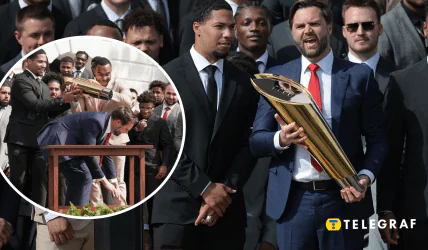 Однако при попытке вице-президента Штатов взять кубок и вручить его Buckeyes, трофей сломался на две части. Металлическая часть кубка изготовлена из 24-каратного золота, бронзы и нержавеющей стали. Вэнс уже пошутил по этому поводу в сети.