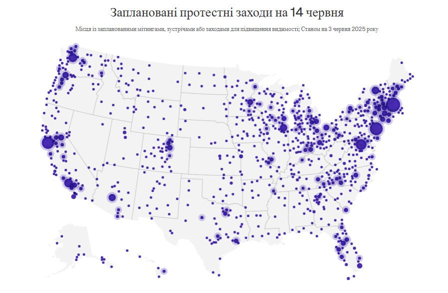 Организаторы заявляют, что цель протестов – "отвергнуть авторитаризм" и надеются вывести на улицы миллионы людей в десятках городов страны – от Лос-Анджелеса до Нью-Йорка. Об этом пишет американское издание Axios.