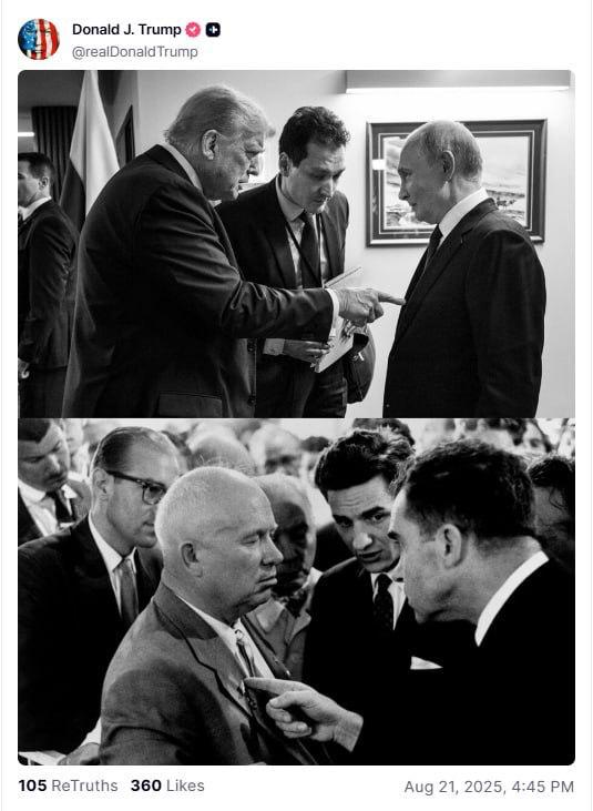 Трамп в своей соцсети сделал неожиданное сравнение Новость обновлена 21 августа 2025, 18:23