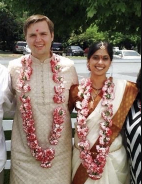 В сети есть фотографии, где Джей Ди Вэнс, в рамках индуистской церемонии, позирует в кремово-белом шервани, а его супруга — в бело-золотистом сари.