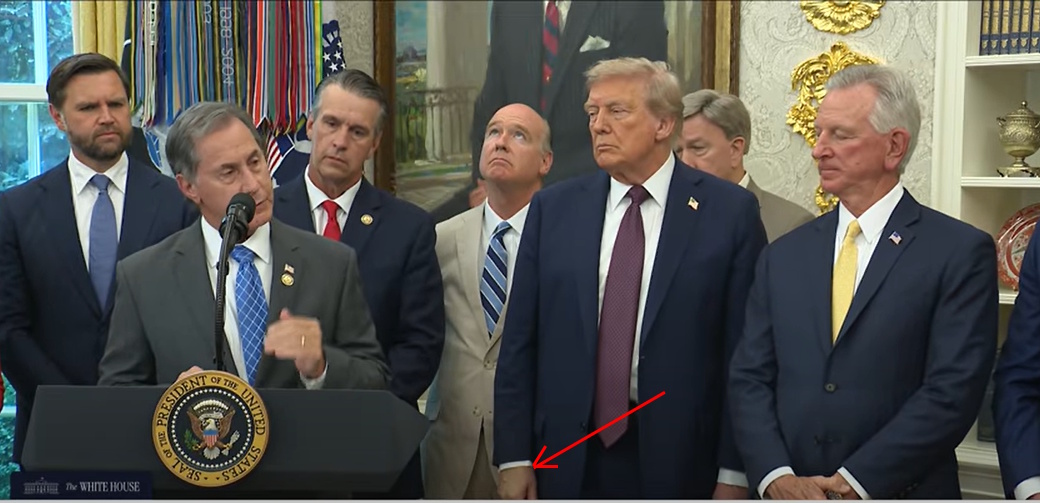 Также в кадр попала его рука, которая и стала причиной тревожных сообщений об ухудшении здоровья президента. Можно увидеть, что она уж не синяя, а нормального телесного цвета. Впрочем, ранее Трампа уже ловили на использовании косметических средств, для сокрытия следов болезни.