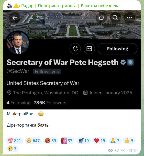 Также пользователи обратили внимание и на то, что глава Пентагона уже переименовал себя в соцсети X. При том, они указали, что выглядит это весьма курьезно.