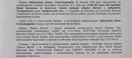 "Я живу в Закарпатье уже восемь лет, но прописан в Одесской области. И когда на блокпосте во время проверки документов увидели это, то не поверили, что я давно нахожусь на Западной Украине, — рассказал " Телеграфу" Денис. — Я объяснял, что пять лет официально работал здесь пекарем, что зафиксировано в налоговой, в моей трудовой книжке, и это легко проверить. Показывал фото с этой своей работы, а также рассказал, что член евангельской церкви уже 11 лет, предоставил соответствующую справку за подписью нашего пастора. Там было указано, когда и где я принимал крещение, что я привлечен на постоянной основе как волонтер в программу гуманитарной помощи.
