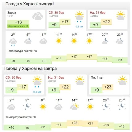 В Харькове 30 марта сутра могли пройти незначительные дожди, но в остальной половине дня погода будет солнечной. Воздух прогреется от +9 до +17 градусов, порывы ветра 2-9 м/с.