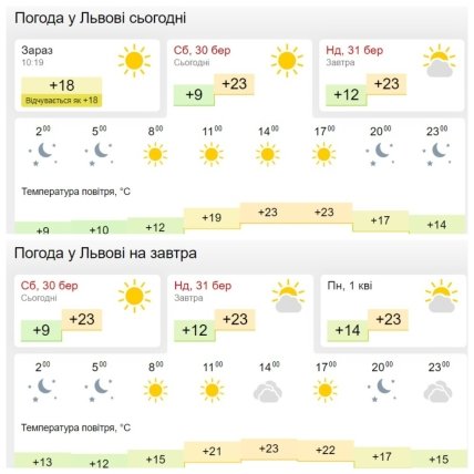В воскресенье, 31 марта, во Львове будет преимущественно солнечно и тепло — от +12 до +23 градусов. Осадков не прогнозируется, порывы ветра будут достигать 11 м/с.