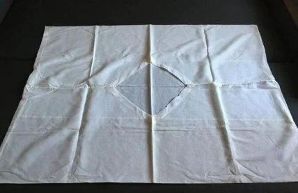 Это делали из-за ограниченных возможностей производства. Ширина материала, например, ситца, составляла 80–90 см, в то время как для пододеяльников требовалась ширина от 143 до 220 см. Приходилось сшивать два полотна, и этот шов проходил посередине, создавая форму ромба.