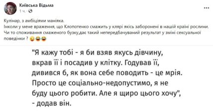 Повар Клопотенко поразил своими жестокими фантазиями по отношению к женщинам: "Украл бы и посадил бы в клетку"