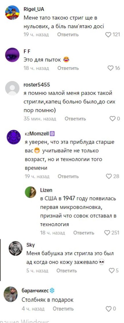 Весьма показательной является реакция пользователей Tik-Tok на видео, популярного тренда "Советское качество". В комментарии к видео они охарактеризовали это устройство не иначе, как "инструмент для пыток".