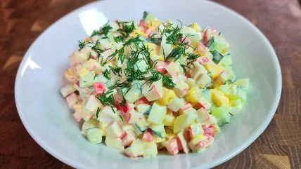 Крабовый салат заиграет новыми красками: что к нему добавить (видео)