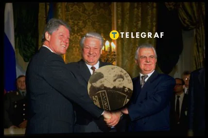 - 14 января 1994 года в Москве президент США Билл Клинтон, президент России Борис Ельцин и президент Украины Леонид Кравчук обменялись рукопожатием. В тот день было подписано Трехстороннее заявление, в котором Кравчук подтвердил намерение Украины присоединиться к Договору о нераспространении ядерного оружия как государство, "не обладающего ядерным оружием, в кратчайшие из возможных сроков".