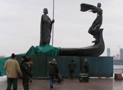 А незадолго до его официального мероприятия в Киеве обрушилась часть памятника основателям столицы – Кию, Щеку, Хориву и Лыбеди.