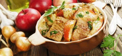 К праздничному столу можно приготовить вкусные салаты, а также подать оригинально приготовленное мясо. Готовится оно довольно просто, а такие секретные ингредиенты, как яблоки и корица, сделают вкус необычным.