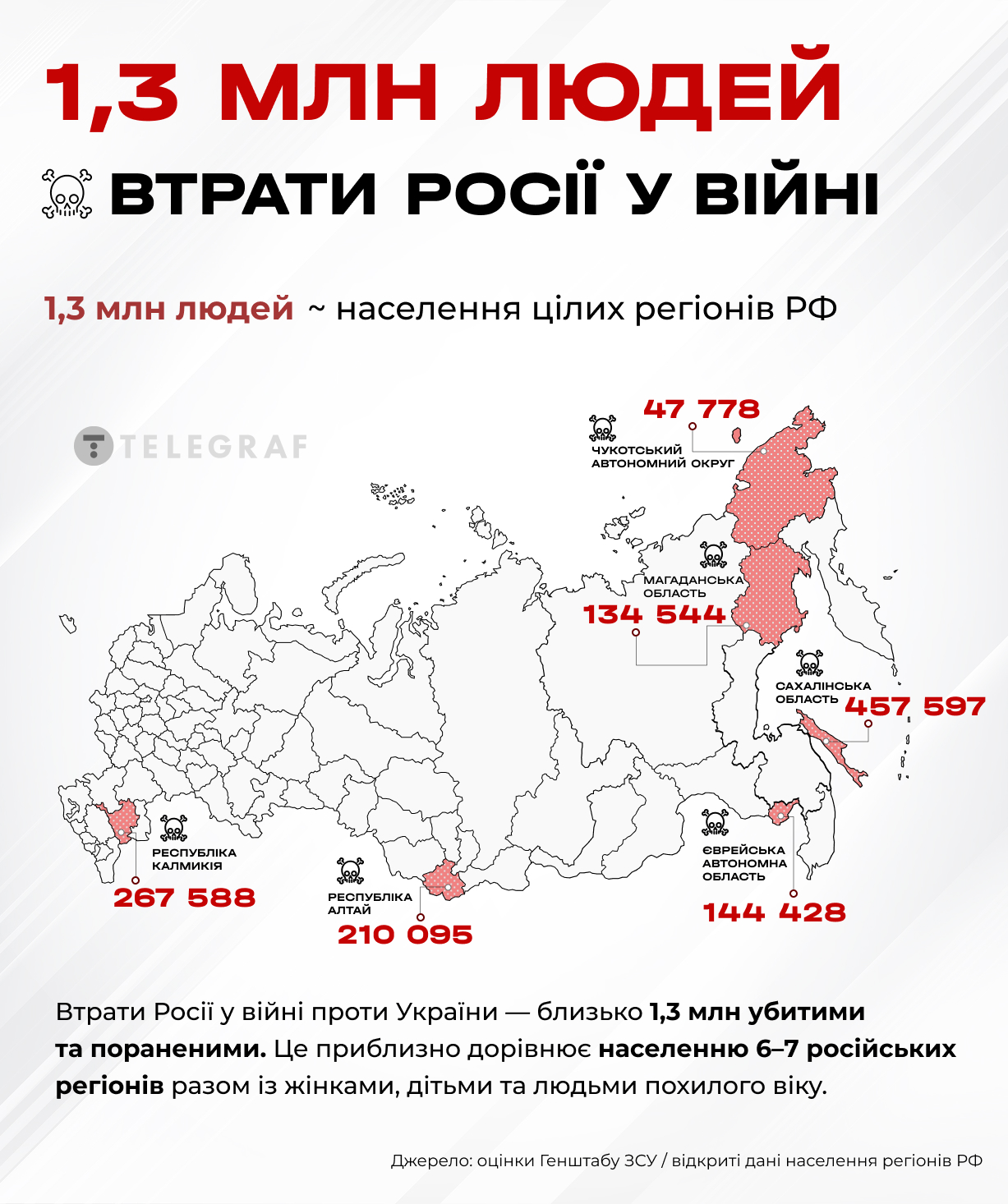 Россия потеряла в Украине уже больше людей, чем население сразу нескольких регионов (инфографика)