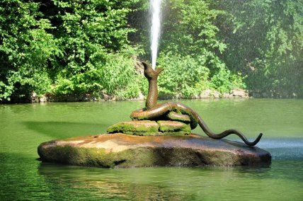 - "Софиевку" украшает фонтан, который называют "Змея". Он выполнен в виде змеи, из пасти которой струится вода высотой до 16 метров.