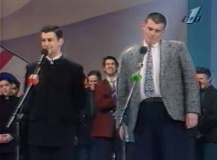 В 90-х Корявченков был немного худее. Это видно по кадрам с выступлений комика на сцене КВН: