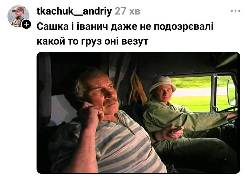 Создатели мемов в этот день большую часть своих работ связали со ставшем легендарным в один миг транспортным средством. Кто-то изобразил фуру в виде машины компании, принадлежащей Петру Порошенко, Roshen.