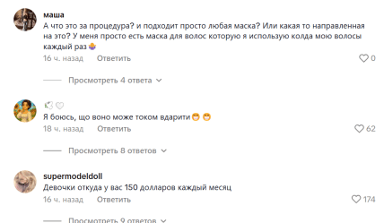 Комментарии под видео по использованию термошапки для волос