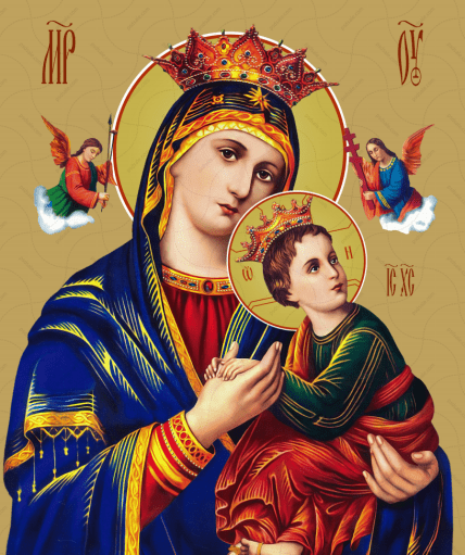 Икона Матери Божьей Неустанной Помощи считается одной из самых известных среди православных верующих и греко-католиков в Украине. На ней изображена Пресвятая Богородица с младенцем Иисусом на руках. Она облачена в красно-синие одежды с золотыми украшениями, а ее голову венчает корона, усыпанная драгоценностями.
