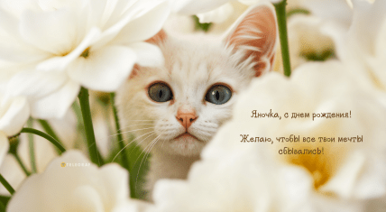 С днем рождения, Яна! Желаю, чтобы тебя любили все: котики — за тепло, друзья — за душу, вселенная — за улыбку 😻 Пусть счастье прилипает к тебе, как блестки на вечеринке!
