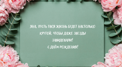 С днем рождения, Яна! Ты не просто огонь — ты целый фейерверк 🎆 Желаю, чтобы искры твоего настроения поджигали уныние у всех вокруг и делали этот мир веселей.