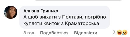 - "А чтобы уехать из Полтавы, нужно покупать билет из Краматорска".