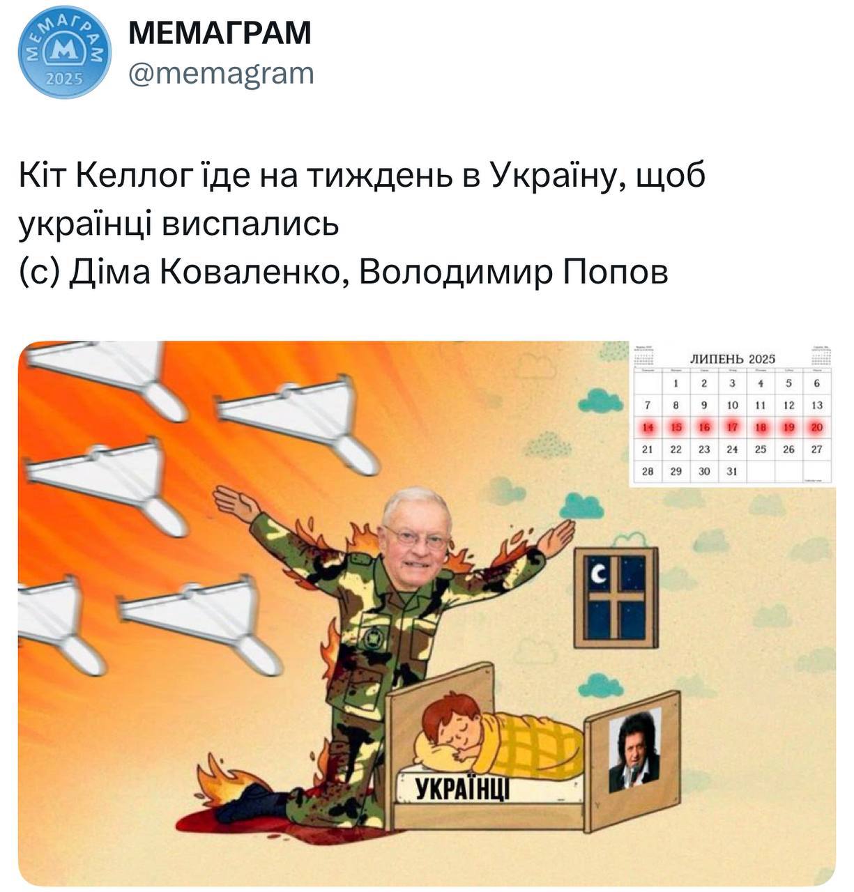 "Украина потеряла лучшее ПВО. Patriot? Нет, Келлог уехал из Киева", — говорится в меме.