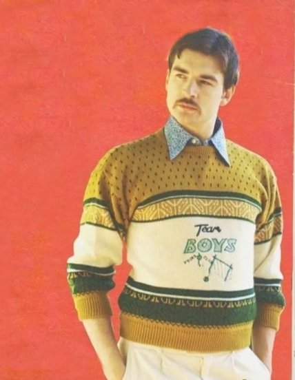 В условиях тотального дефицита любой "иностранный" или просто нестандартный принт выглядел круто и современно. Свитер с английским словом BOYS всегда ассоциировался с таким далеким, но заманчивым Западом.