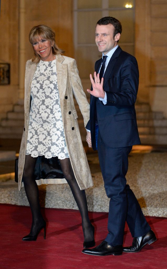 В общем короткое платье белого цвета с молочным тренчем подходит Макрон, ведь подчеркивает его стройные ноги. Однако образ портят черные колготки с черными туфлями, которые делают низ лука тяжелым. Сюда подходили бы телесные колготки и обувь молочного оттенка. Тогда бы лук первой леди Франции был бы более гармоничным.