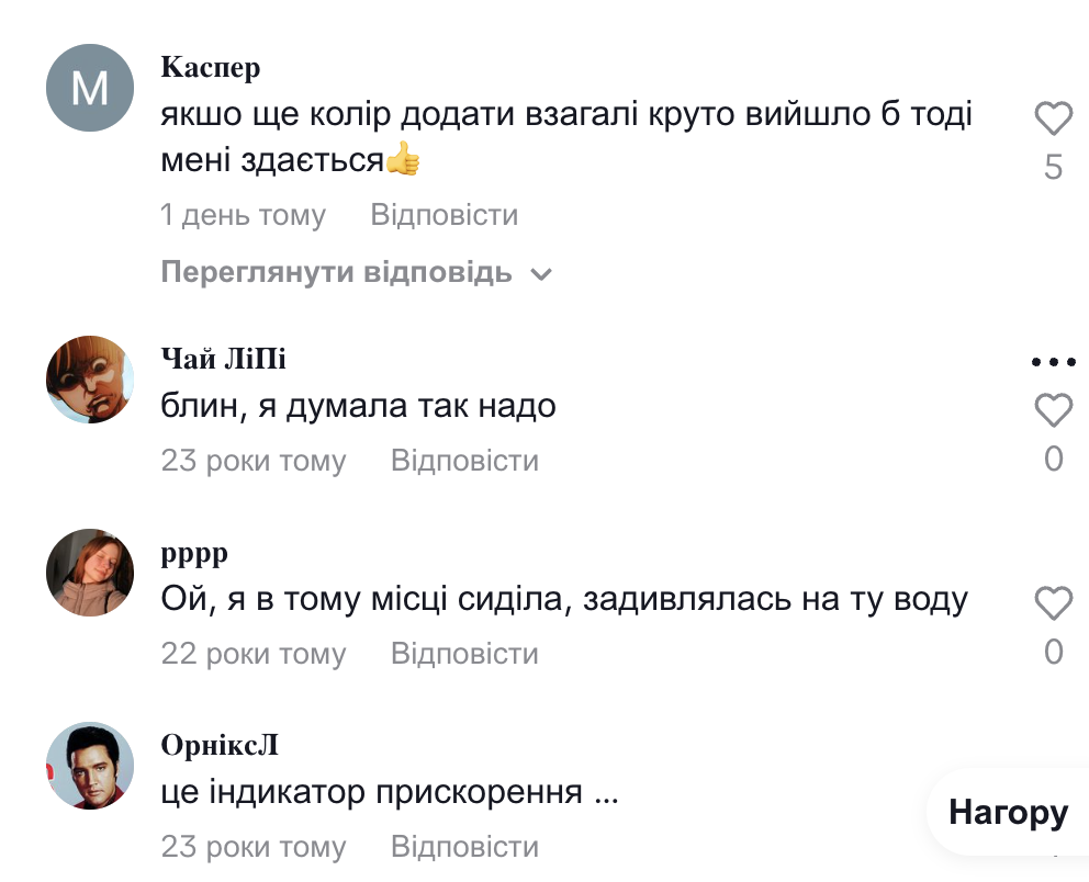 В комментариях пользователи шутили, что это не только индикатор плавности движения и скорости, но визуализация эквалайзера. Кто-то говорил, что к автобусу можно подключить телефон и вода будет "прыгать" в так музыке. Были люди, которые в шутку спрашивали, стекло наполовину пустое или полное. Многие украинцы предложили запустить туда рыбок и тогда это стекло действительно стало бы аквариумом.