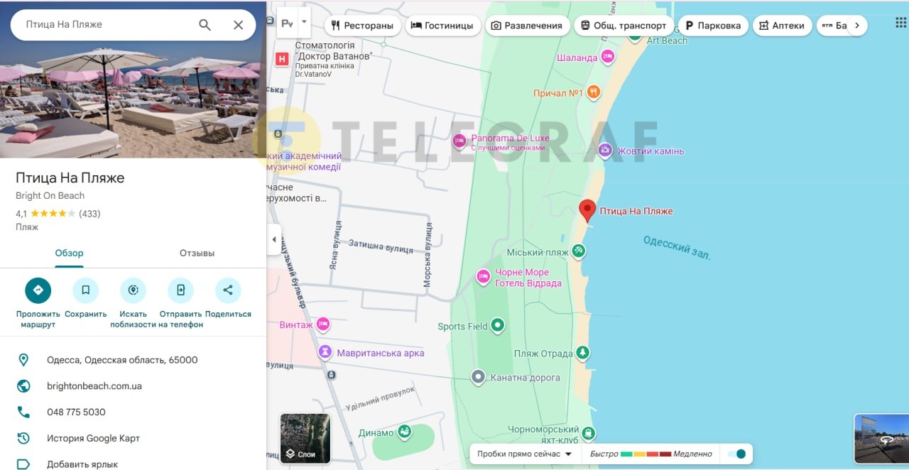 Чтобы найти его на карте, следует просто написать "розовый пляж Одесса" или "Птица на пляже".