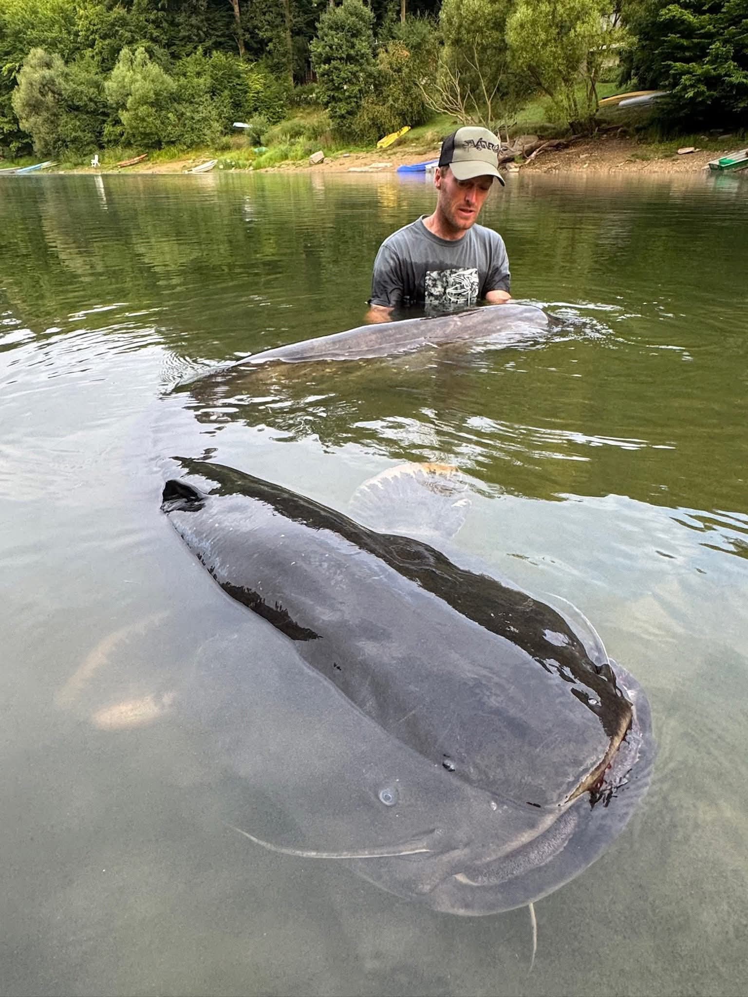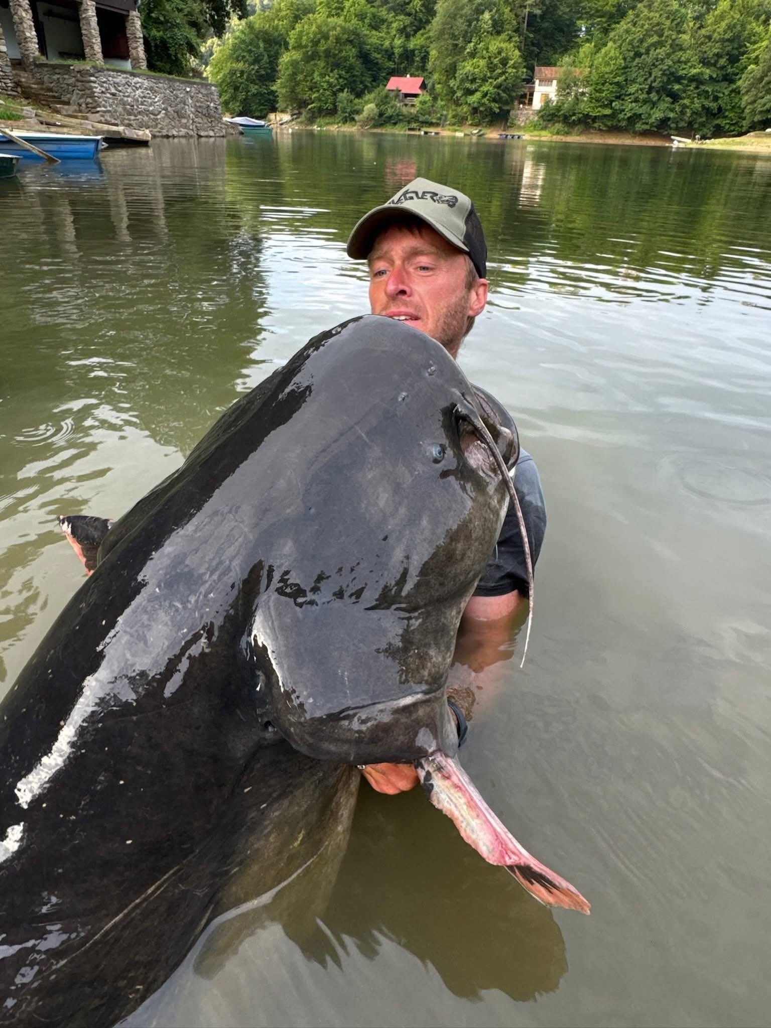 Он всегда отпускает свой улов, так было и в этот раз. Однако сначала, несмотря на активное желание сома убежать, Якуб Вагнер устроил с ним фотосессию.