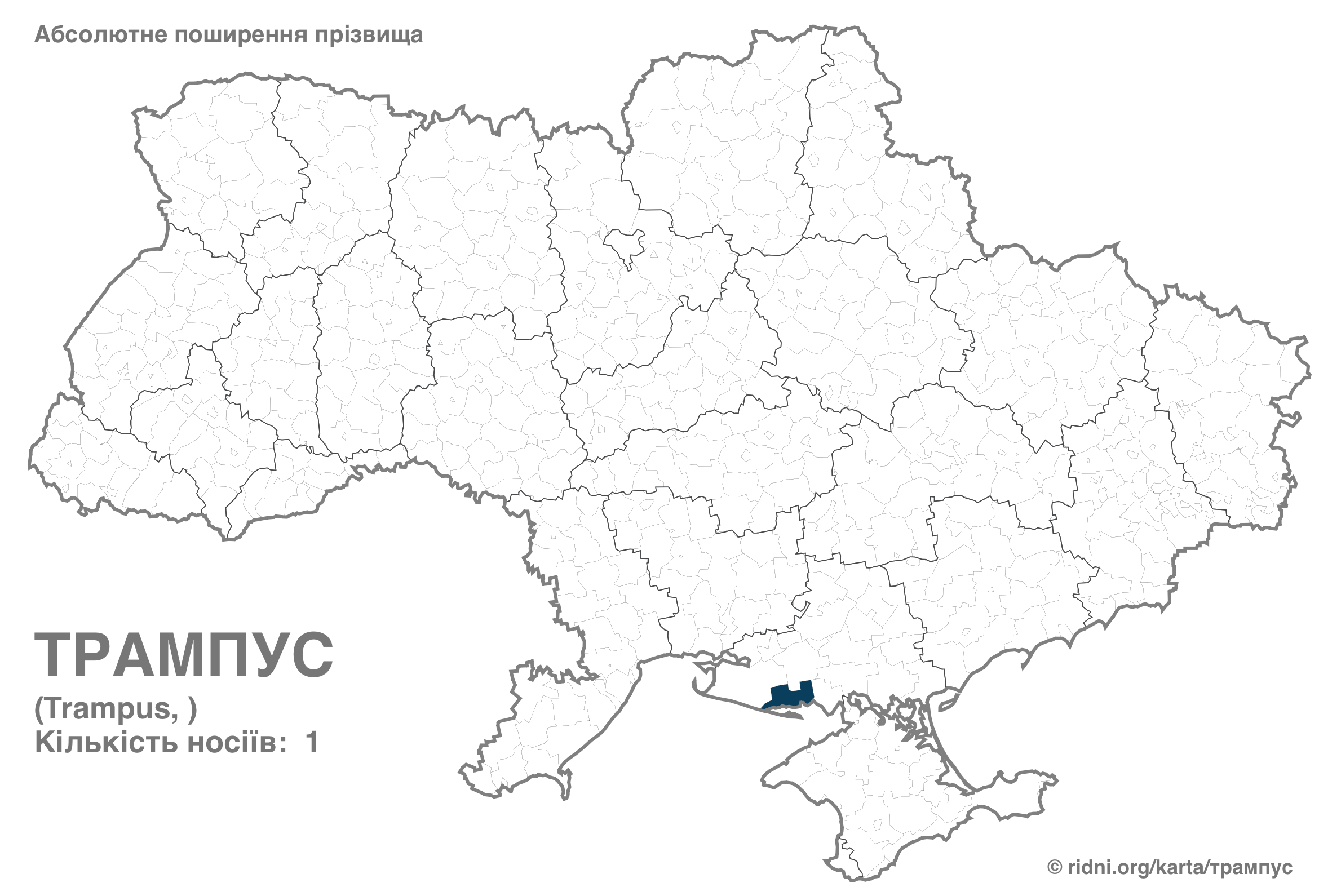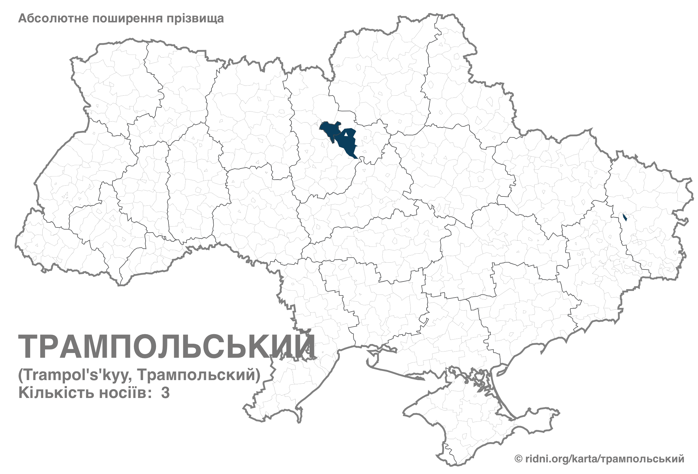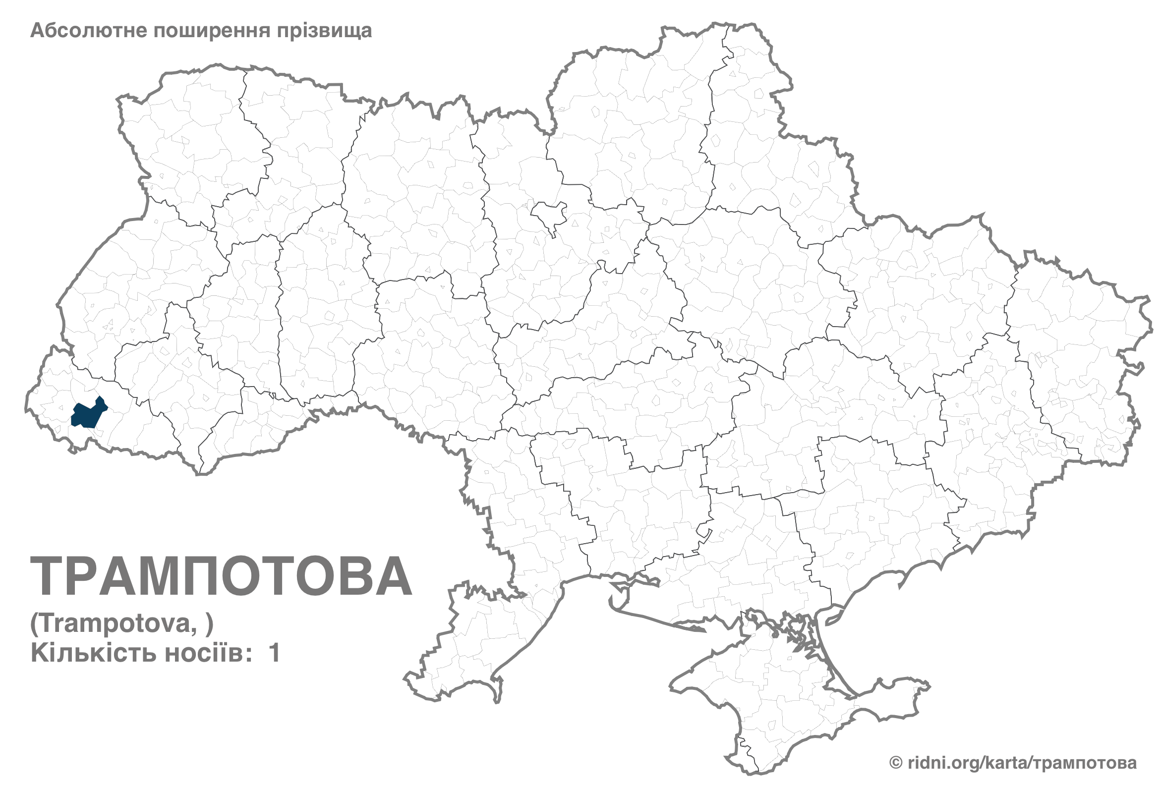 Наименее распространены Трампус и Трампотова — каждая из этих фамилий встречается только у одного человека. Первая зафиксирована на юге Украины, вторая – на западе.