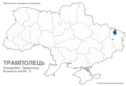 Наиболее распространена фамилия Трамполец — ее носят 9 человек, проживающих преимущественно в восточной части Украины. На картах видно, что эти люди сосредоточены в нескольких районах.