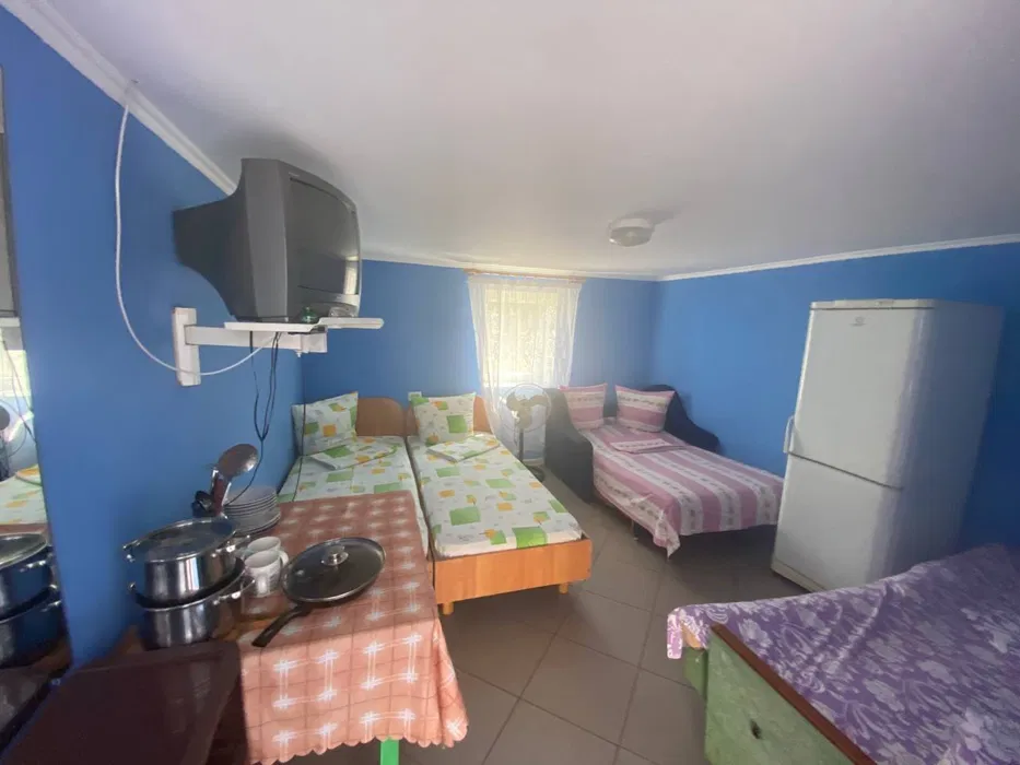 Как видно на фото, жилье в стиле "все в одной комнате". В "номерах" — кровати, холодильник, плита, телевизор. Также показана общая столовая.