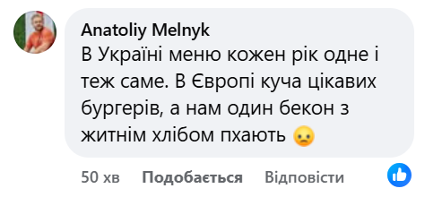 - В Украине меню каждый год одно и тоже. В Европе куча интересных бургеров, а нам один бекон с ржаным хлебом пхают