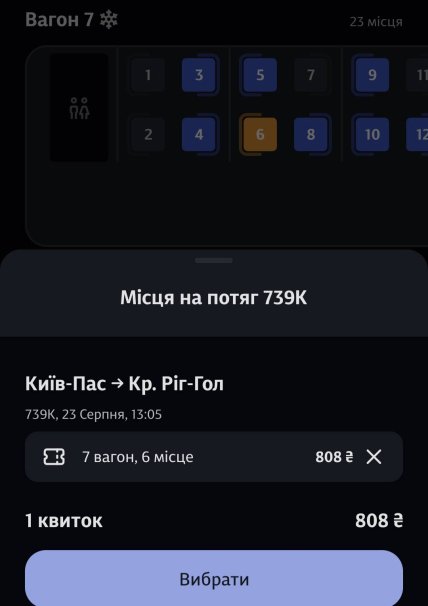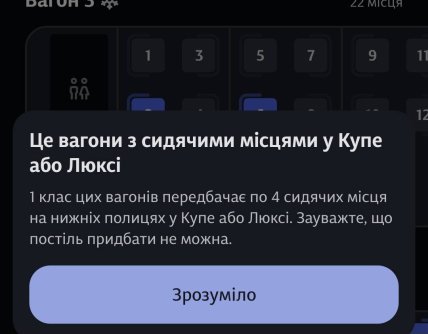 В очередной раз возникает вопрос: Когда и где мы свернули не туда? В который раз Укрзализныця пробила дно! Мало того, что сейчас купить билеты это еще тот квест, то вы попробуйте еще поехать дополнительными поездами, а ля "интерсити по-украински" сидя на одной полке вдвоем 7 часов до Кривого Рога. Все пассажиры возмущены и я не исключение! Предупреждения о сидячих местах есть, но уважаемые, билет стоит 808 гривен, это не слишком для сидячего места?