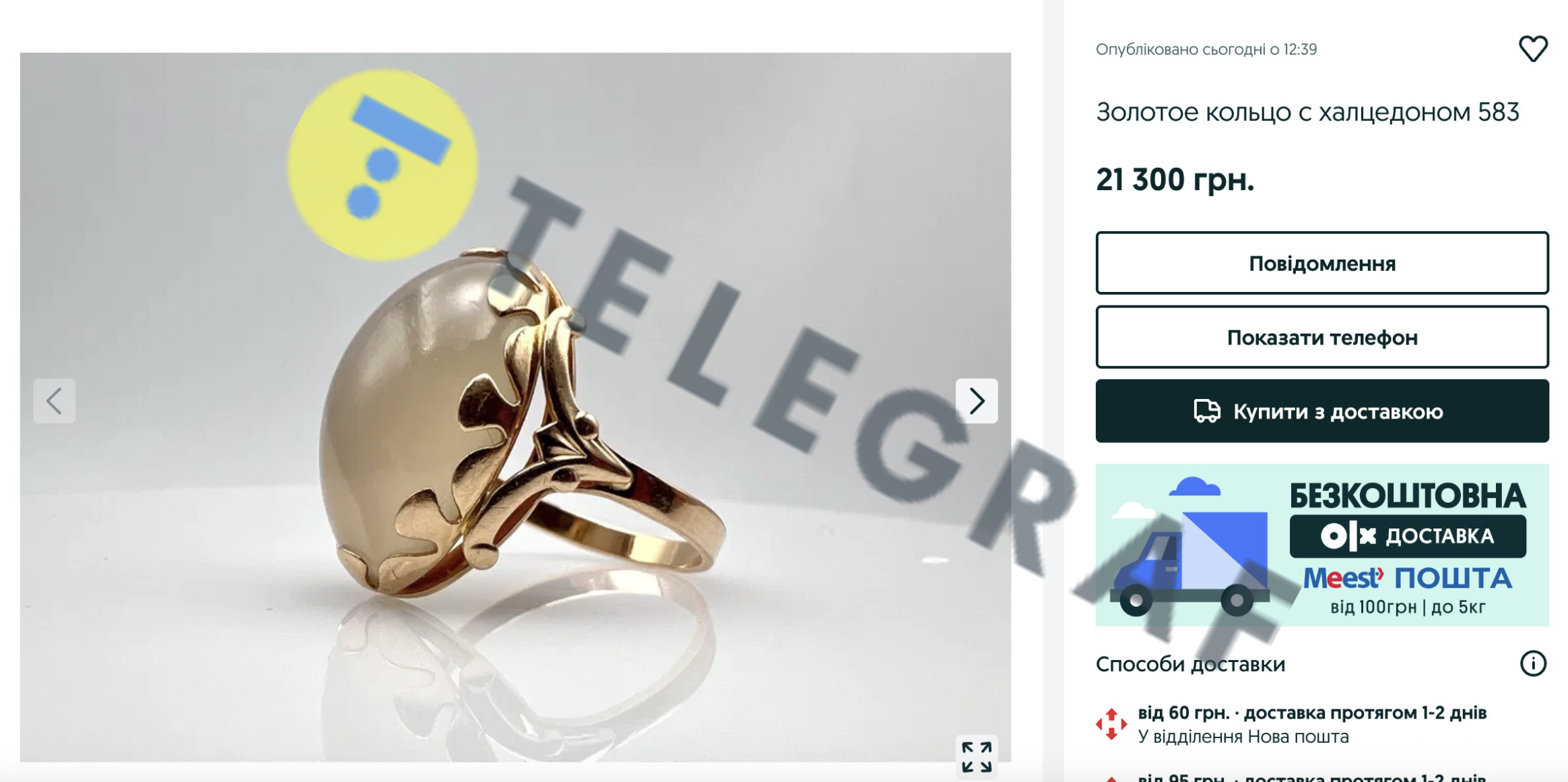Объявления по продаже такого украшения в Украине уже выложили на портале подержанных вещей. Отмечается, что кольцо с халцедоном продается более чем за 20 000 грн.