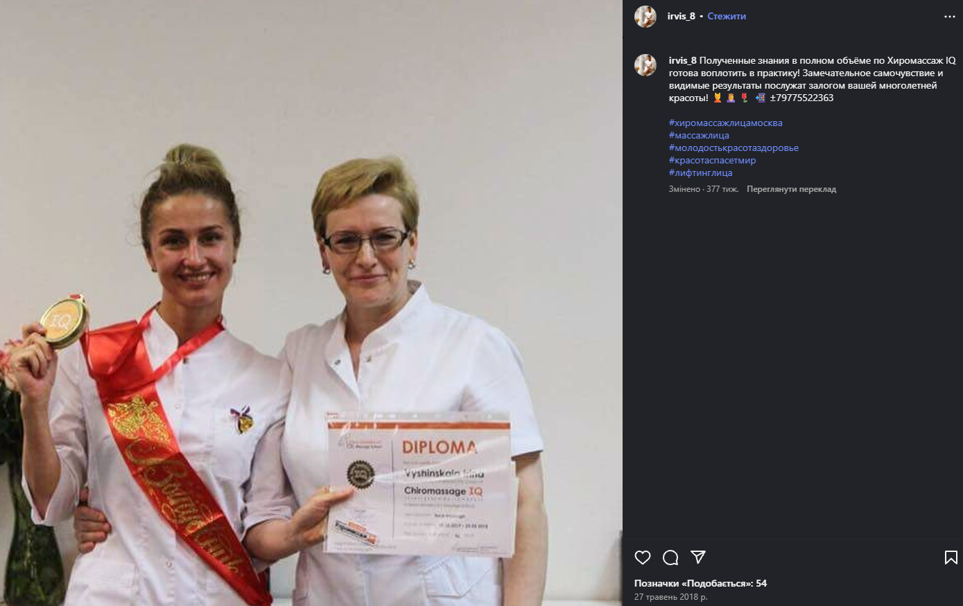 Вышинская имеет аккаунты в различных социальных сетях. В одном из них она поделилась, что с 1991 по 1994 года училась на медсестру в Медицинском училище № 8 в Москве. Также у россиянки есть экономическое образование, которое она получила в Финансовом университете при Правительстве РФ. После побега из Украины Ирина пошла на курсы косметологии в Москве и теперь делает россиян "красивыми".
