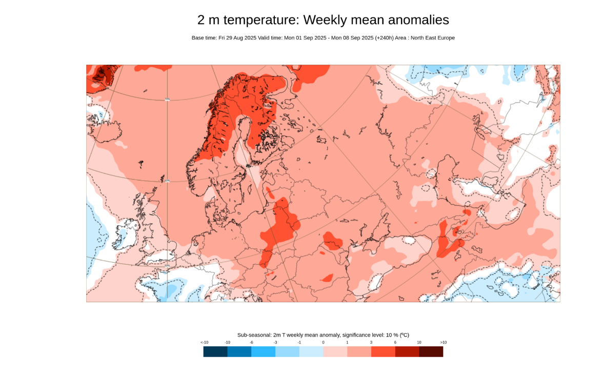 Средняя декадная температура в начале сентября ожидается существенно выше нормы во всех областях. На фоне преобладания южных и юго-западных ветров, а также малооблачного неба будут фиксироваться довольно высокие показатели температуры воздуха. Количество осадков, а также их распределение по территории окажется неравномерным. Но в целом ожидается существенная нехватка дождей по всем регионам Украины и усиление засухи, особенно в южных, восточных и центральных областях