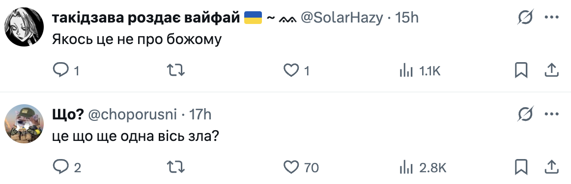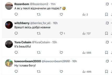 Однако отдельно следует отметить комментарии под сообщением о партнерстве, ведь в них не только упоминали Бога и Иисуса Христа, но и писали об "адском партнерстве". Были люди, которые спрашивали, как в аду отметили это событие, или что в Украине создали новую ось зла.