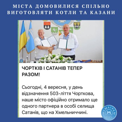 "И хотя уже само название "Чортков + Сатанов" звучит эпически, мы искренне надеемся, что и на деле это сотрудничество будет столь же эффективным!" – говорится в сообщении местных властей.