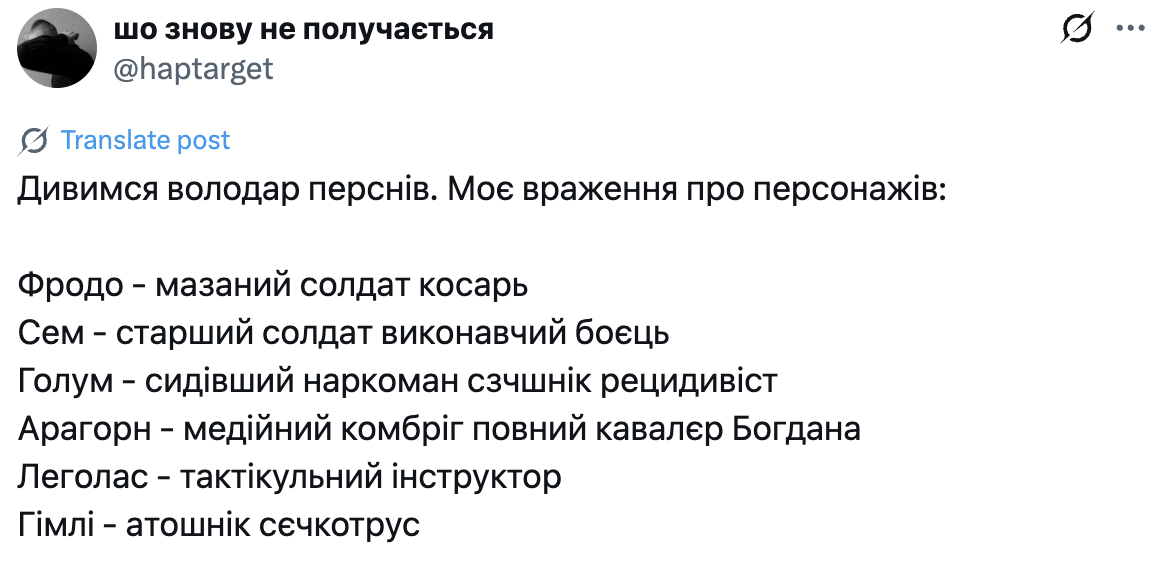 Кем бы могли быть герои "Властелина колец" в реалиях войны в Украине? В сети вирусится смешной тренд