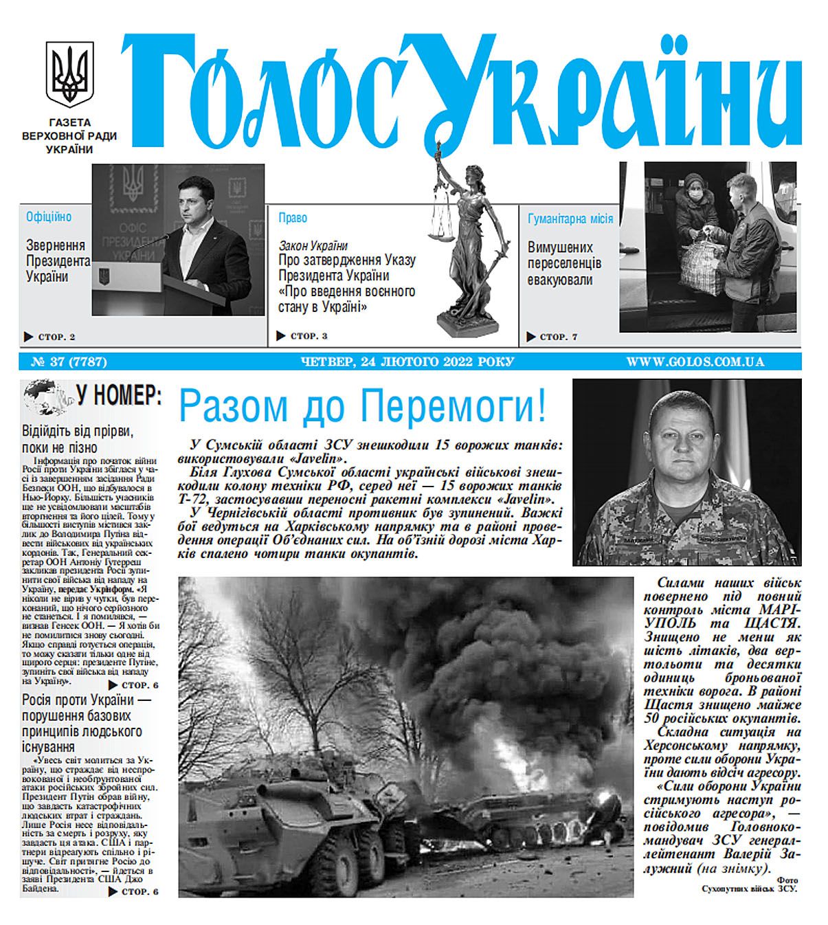 "Голос Украины" с первых номеров выполнял сразу две функции: информативную и официальную