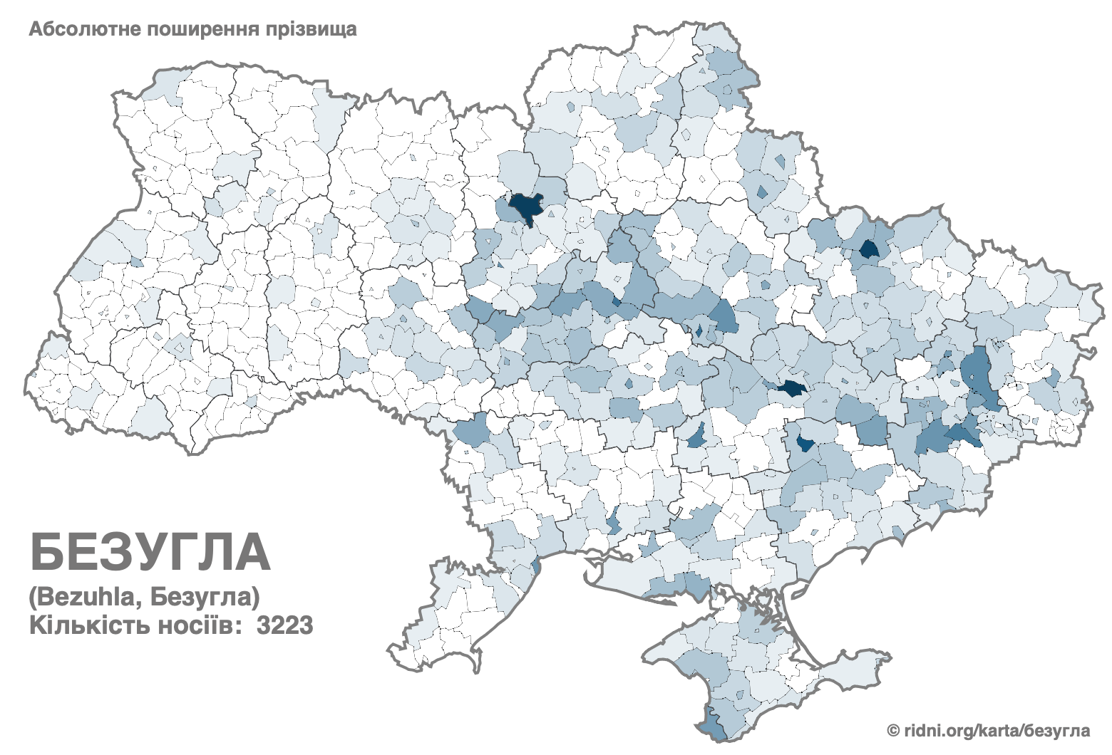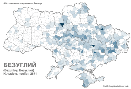 Мужской вариант фамилии — Безуглый менее распространен и насчитывает 2671 носителя. География его распространения в целом совпадает с женским вариантом, но с несколько меньшей концентрацией в отдельных регионах.