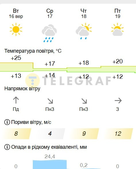 По прогнозу Украинского гидрометеорологического центра и Meteofor, дожди будут идти как в среду, так и в четверг. Самыми сильными они ожидаются в течение 17 сентября.