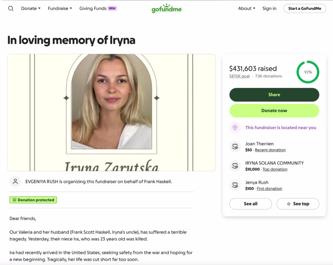 Ранее "Телеграф" сообщал, что убийство Ирины Заруцкой получило широкий резонанс. Оно привлекло внимание даже традиционных критиков Украины вроде Илона Маска и Дональда Трампа-младшего. Известно, что Ирину похоронят в США.