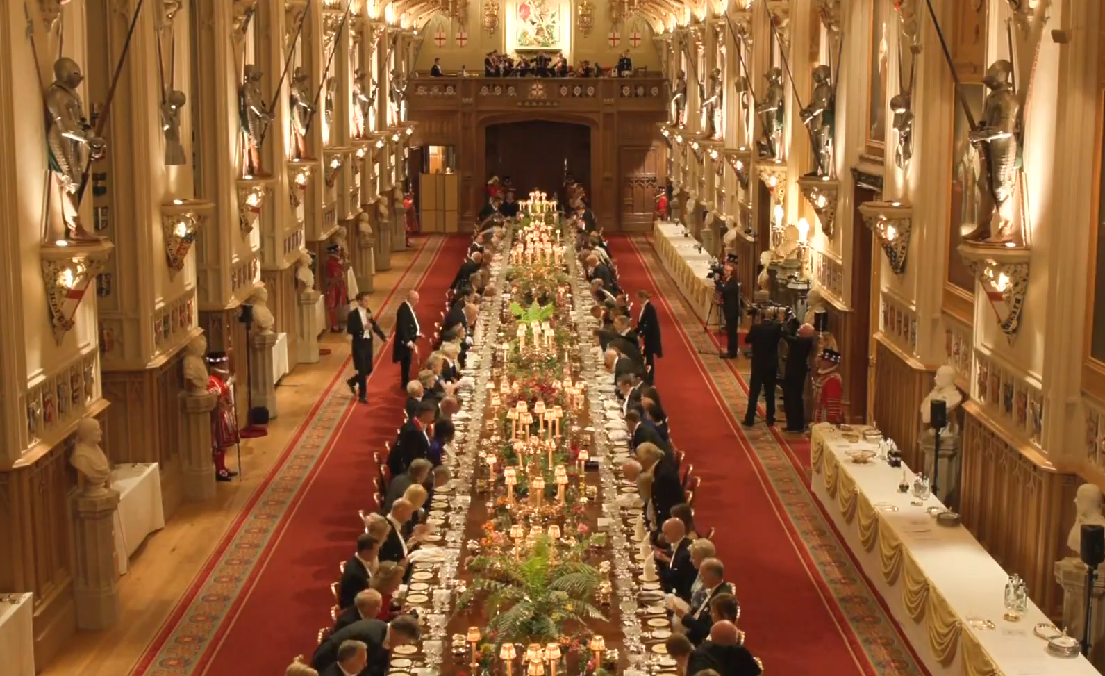 Настоящий королевский прием был спланирован с особой тщательностью и готовился он заранее. Как сообщает британский корреспондент ITV News Джон Рэй, персоналу Виндзорского замка потребовалось несколько дней, чтобы накрыть стол для банкета, на котором в среду, 17 сентября, присутствовало 160 гостей.