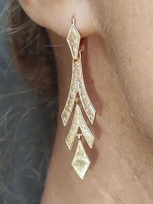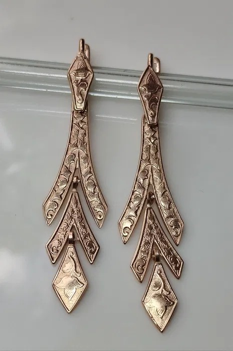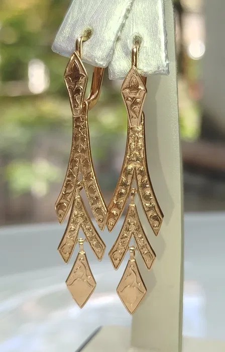 Роскошные сережки, о которых мечтала каждая советская женщина, продают в Украине. Украшения-подвески изготовлены из золота высшей пробы.