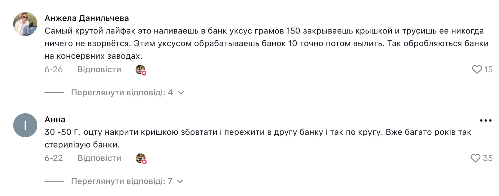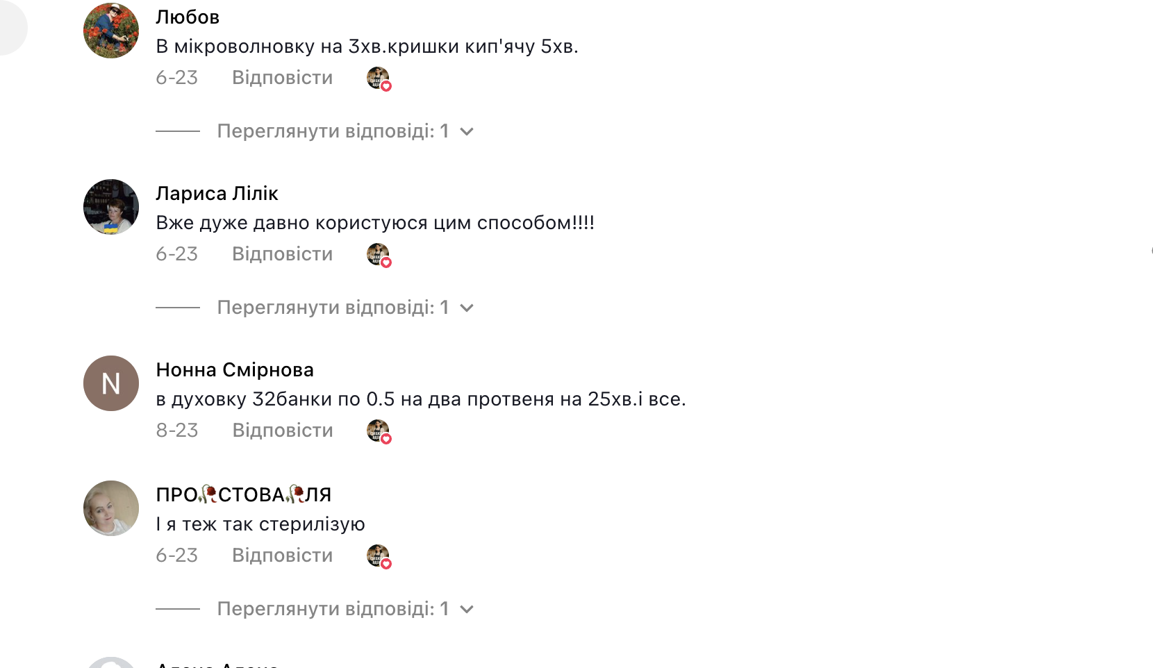 В комментариях многие пользователи отмечали, что есть гораздо более простые и более действенные способы стерилизации. Кто-то говорил, что ополаскивает банку уксусом, а кто-то — что стерилизует их в духовке.